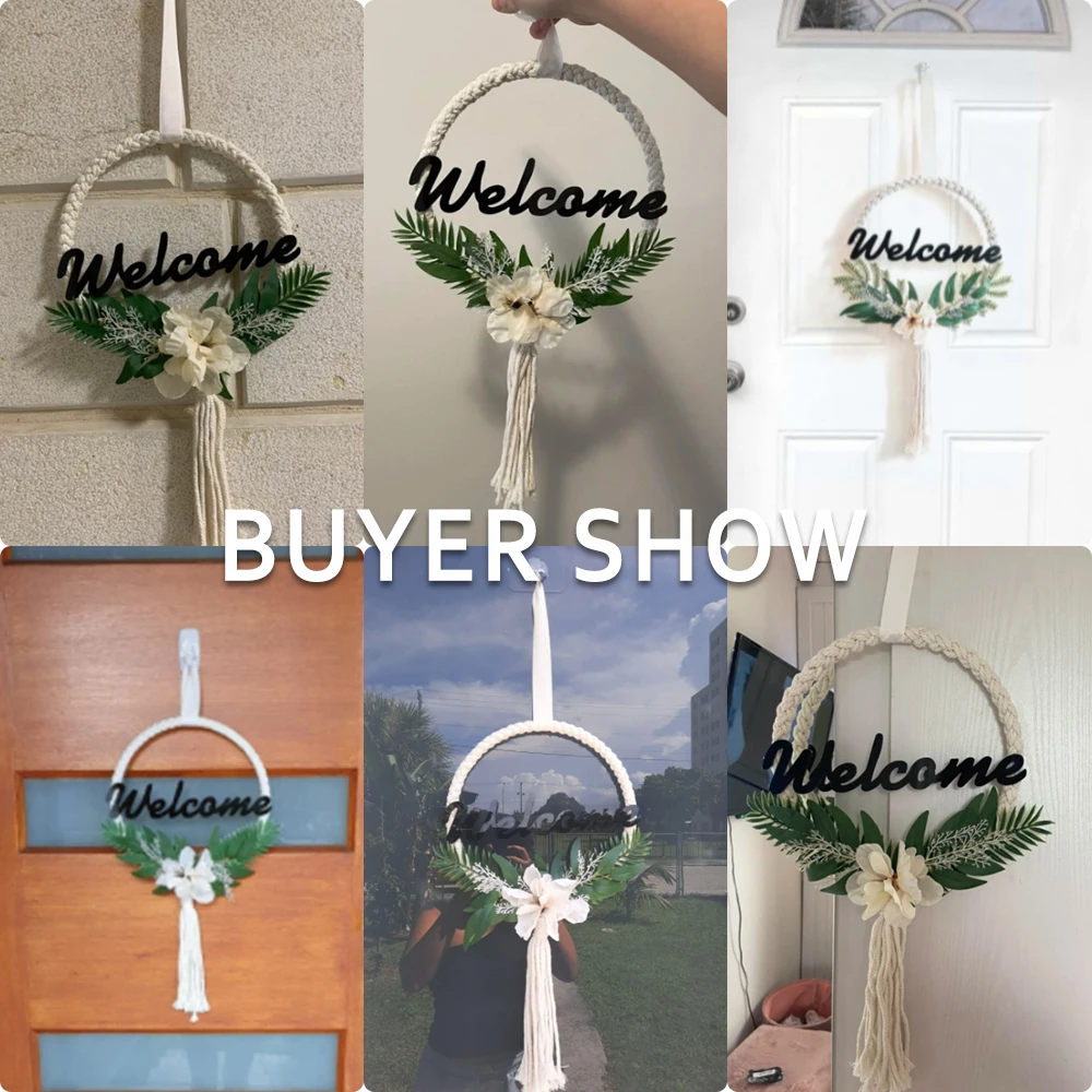 Farmhouse Wreath with Handmade Woven Loop Artificial Leaves and Flowers,Art Home Decor Shop Decor Bohemian Wedding Backdrop